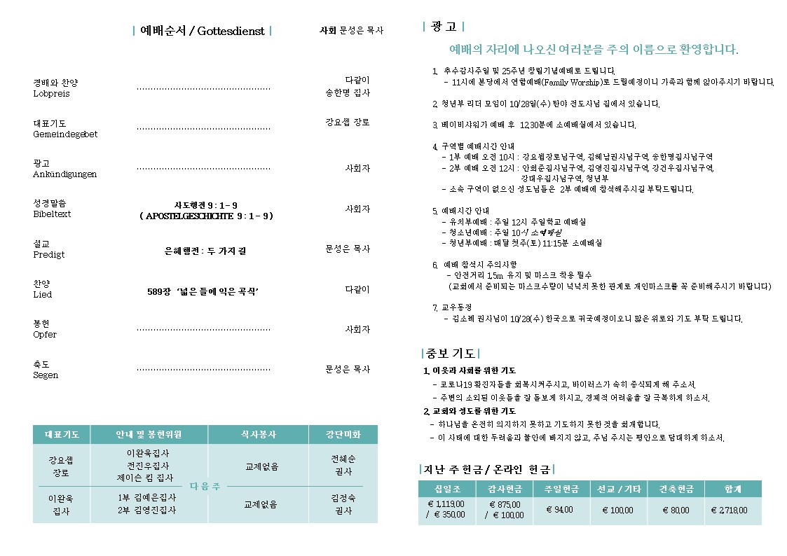 | 제1454호 18 Oct 2020 - 문성은 목사님 - 세째주 (0) | 2020.10.17 |
